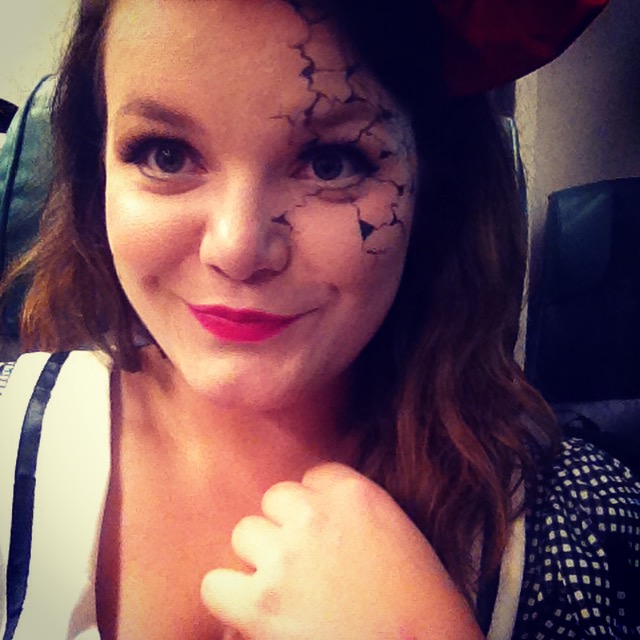 Halloween, the holiday for the wicked. I had so much fun. Going to these weird, sketchy stores that suddenly appeared one morning as if they were magicked there by an invisible hand. Full of plastic crappy decorations, fake blood, naughty costumes, and spooky music. Welcome to capitalistic America. The amount of things carried in these stores was incomprehensible to me. And I loved it—the sound effects, makeup, little details, and cheesy shit. It was heaven. It was also a time to think about what I’d do on the holiday itself. Thankfully, one of the aupairs invited me to join her and her boyfriend at some bar in the city. Halloween in Manhattan?! Sign me up. So, I started looking for costumes. Harley Quinn was a top choice, the movie Suicide Squad was freshly out, and I fell in love with her. But I had a hard time imagining my body in an outfit like that, so I scratched that. In the end, I decided to go as a broken porcelain doll. I bought a little dolly outfit, did my cracked makeup, put on a bow, and was ready for the city.